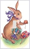 Easter Bunny Painting the Egg Decorative Switchplate Cover Feature